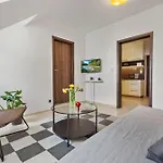 In deze accommodatie is een ingerichte keuken waar gasten hun eigengemaakte maaltijden kunnen bereiden. Bratislava ligt op 5 km afstand en bushalte Hodzovo nam is binnen 5 minuten loopafstand van 1-slaapkamer Apple Apartment.